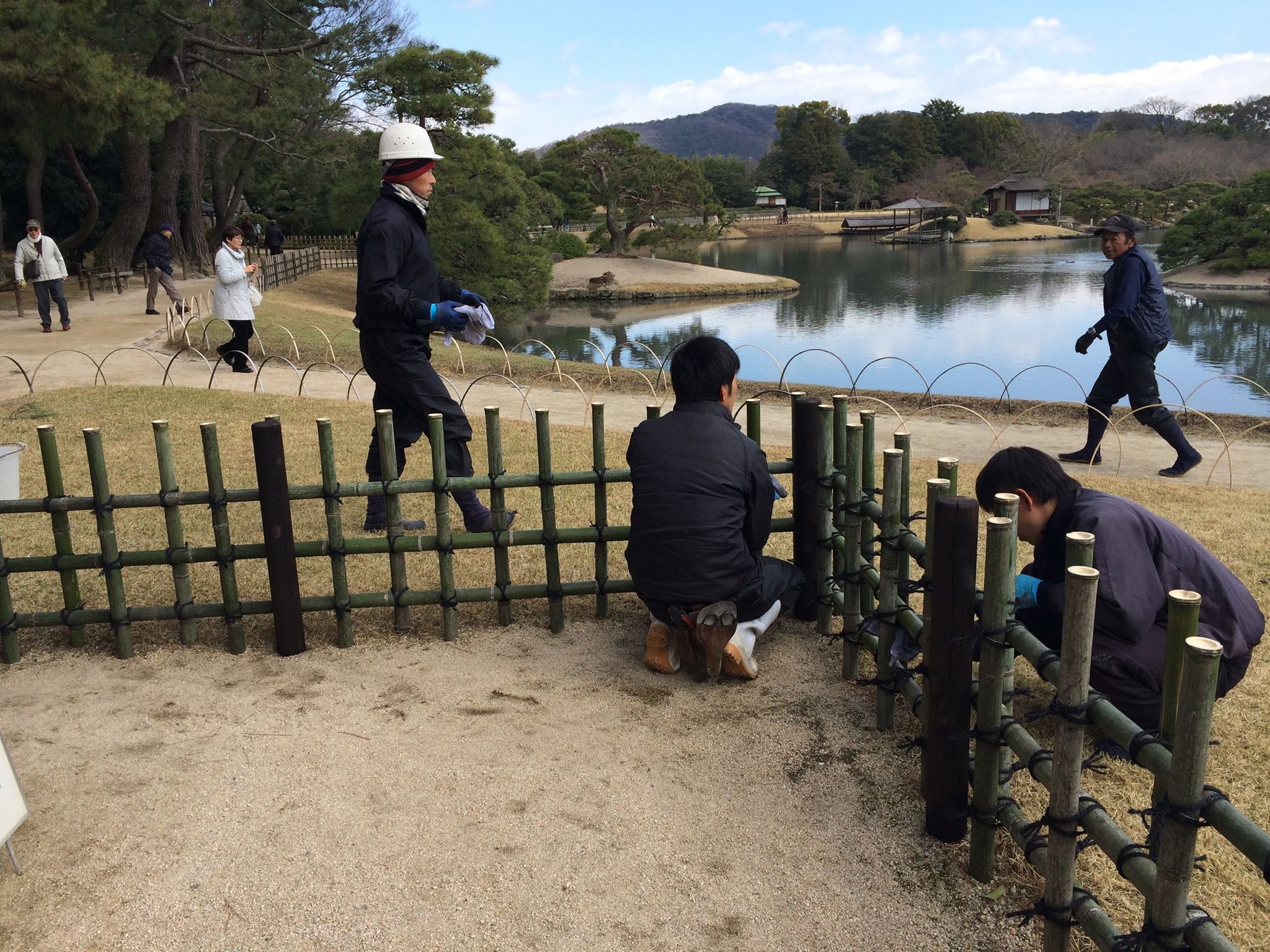 image昨日雨の中完成させた外垣を今日は支柱と竹の一本一本を丁寧に雑巾で磨いていました。