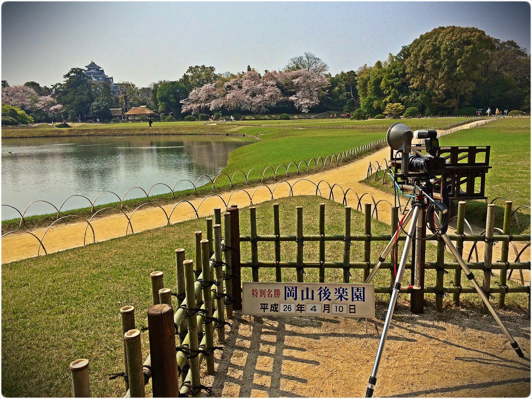 4日ぶりの後楽園なので桜はすっかり散って葉桜になっているかと心配してましたが、遠目にはまだ綺麗に咲いているように見えます。