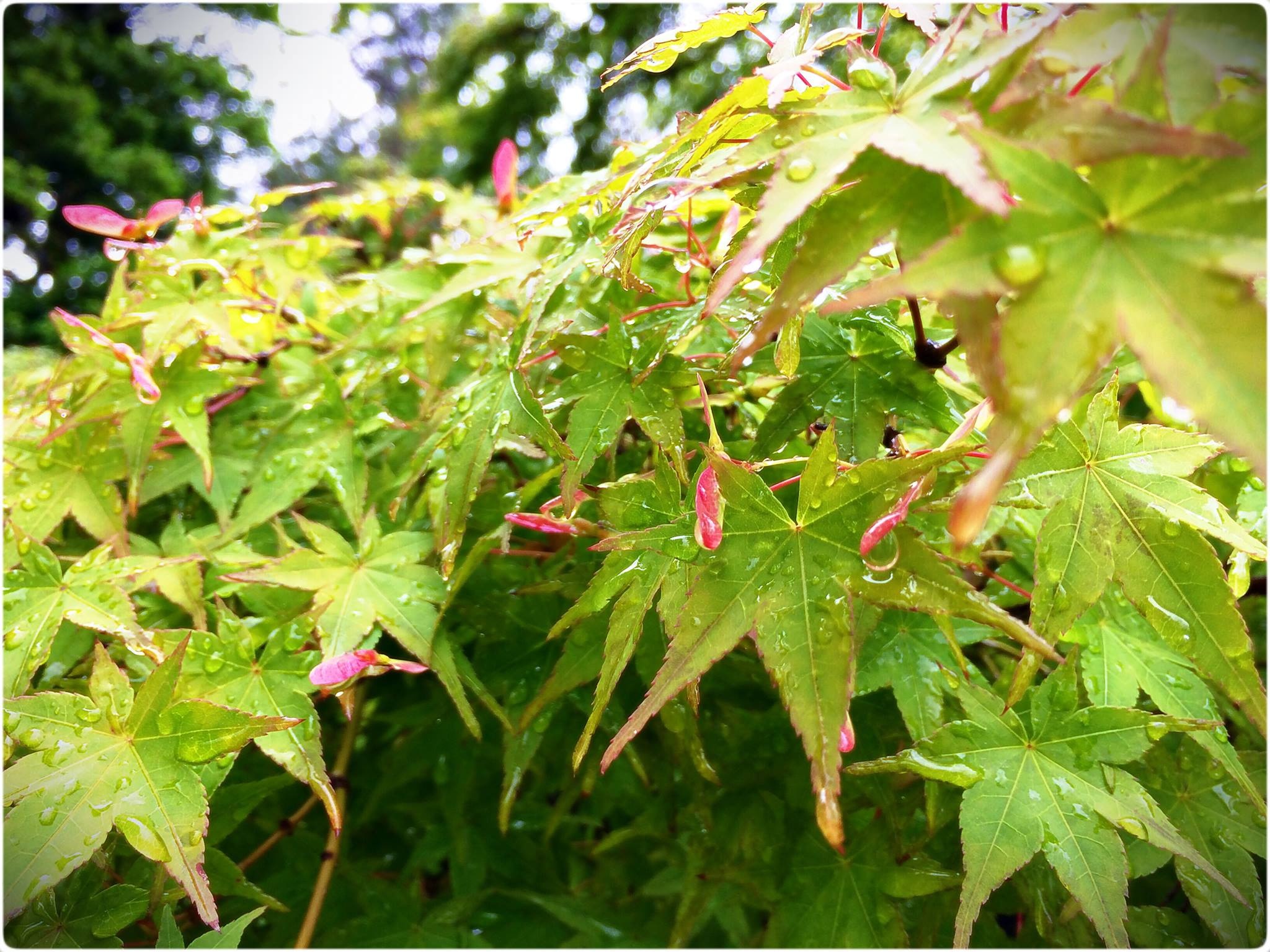 雨上がりの水滴が新緑に映えて綺麗でした。