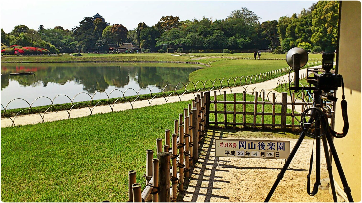 今日は昨日から一転温かくてとてもいいお天気です。 朝方は薄曇りでしたが、今は青空も広がり岡山城がくっきり見えます。