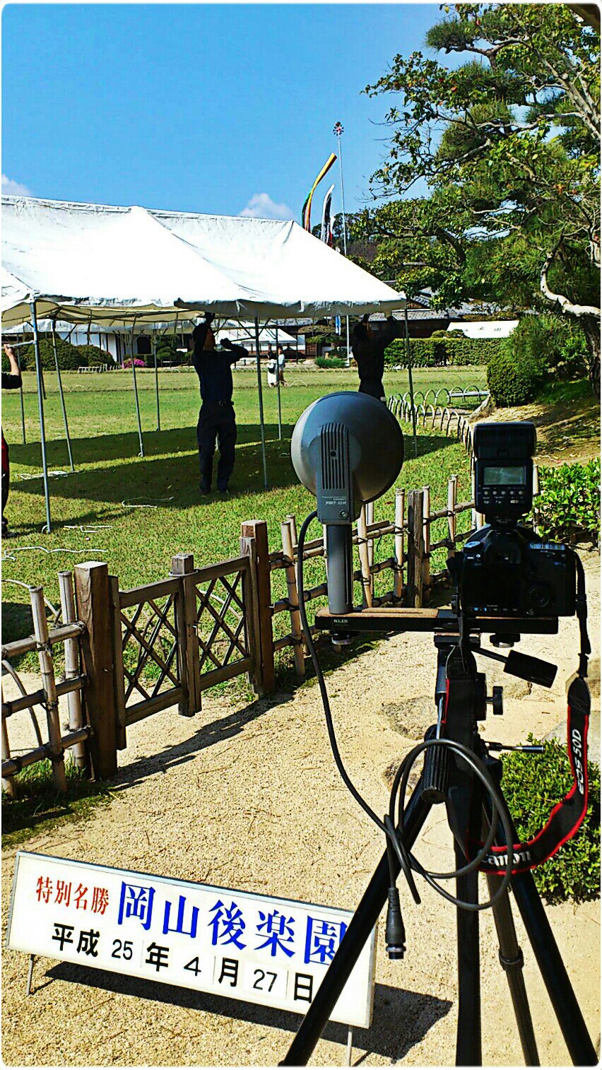 いつもの岡山城をバックにしたベストポイントでの撮影は、今日は無理みたいです。。。