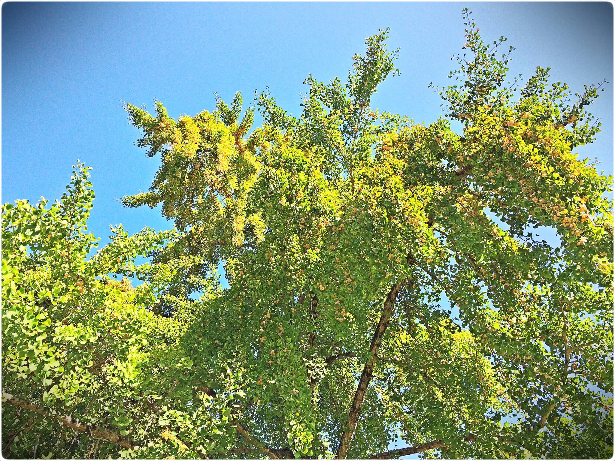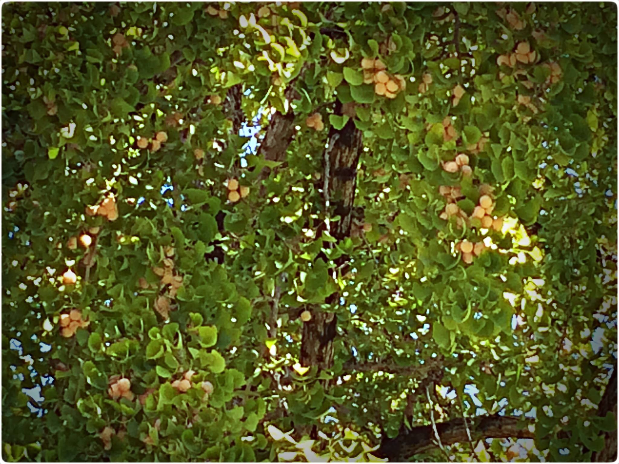 後楽園正門と残夢軒の間にある芝生に生えている銀杏のぎんなんです。