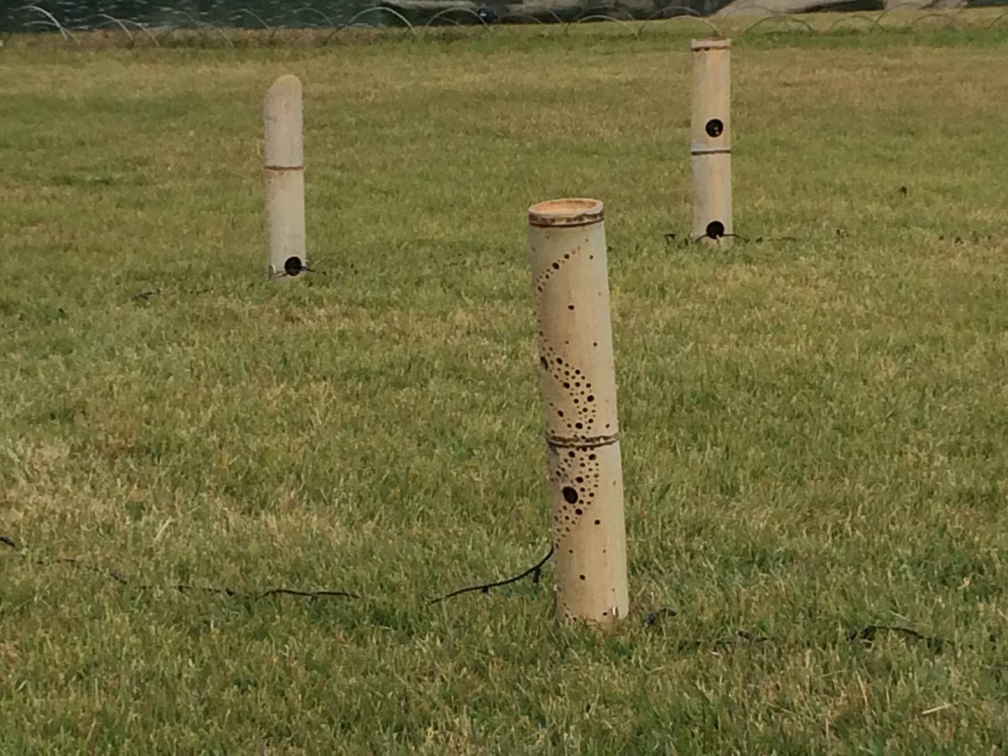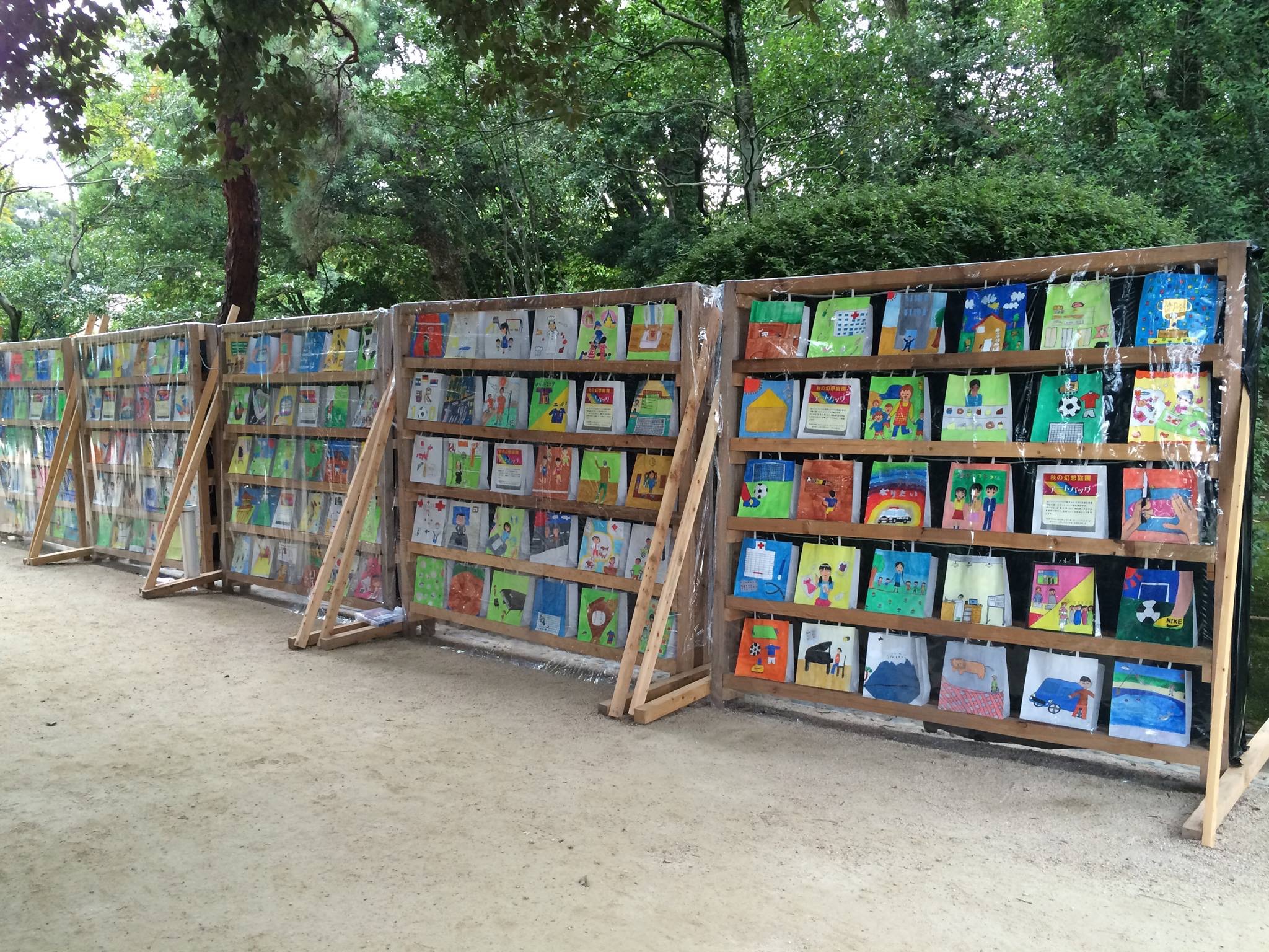 竹筒を見るとコードが繋がれていました。今回はロウソクではなくて、LEDで照明するようです。 行灯も手書きの紙袋が綺麗に設置されました。