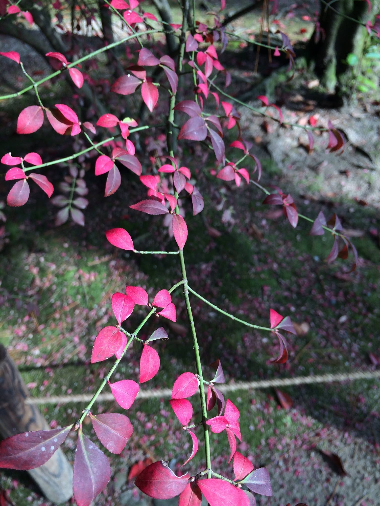 一方楓だけではなくて観騎亭南側に生えている名前の分からない木も真っ赤に紅葉しています。