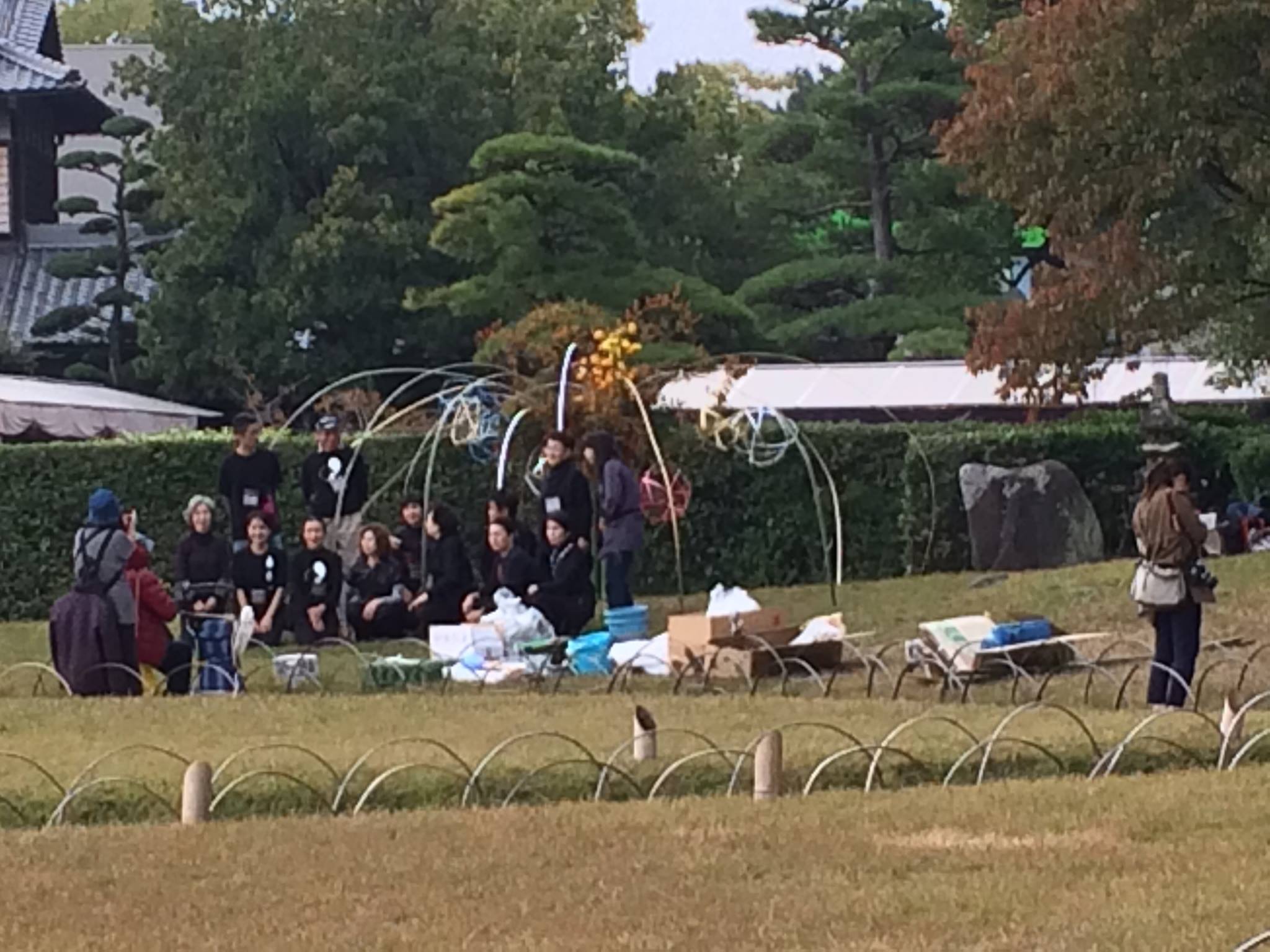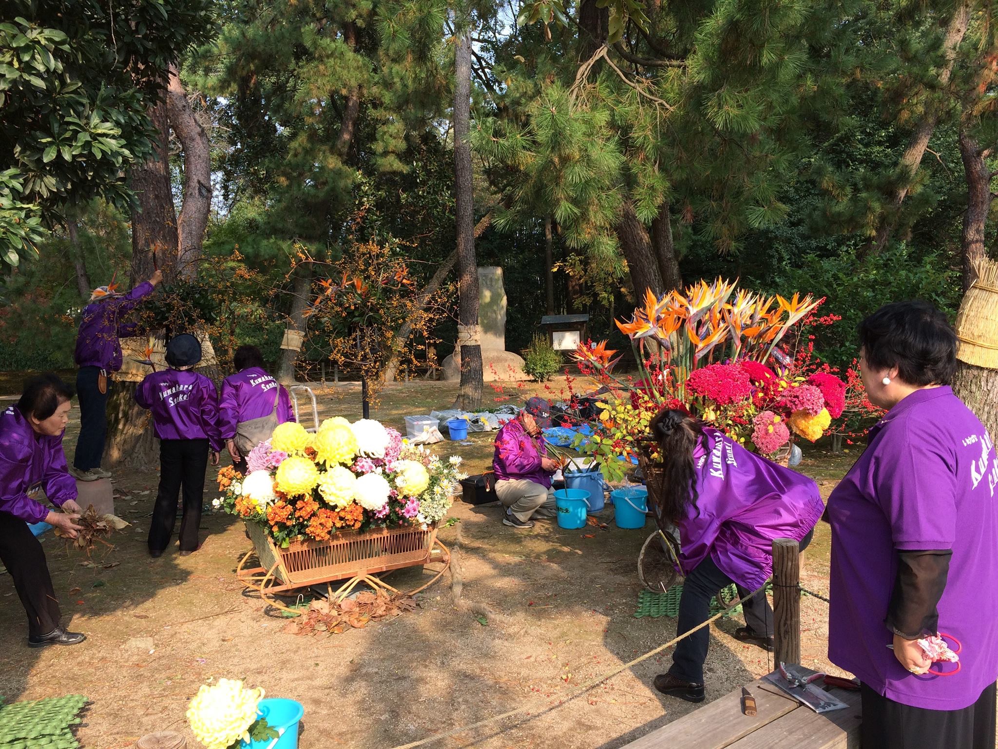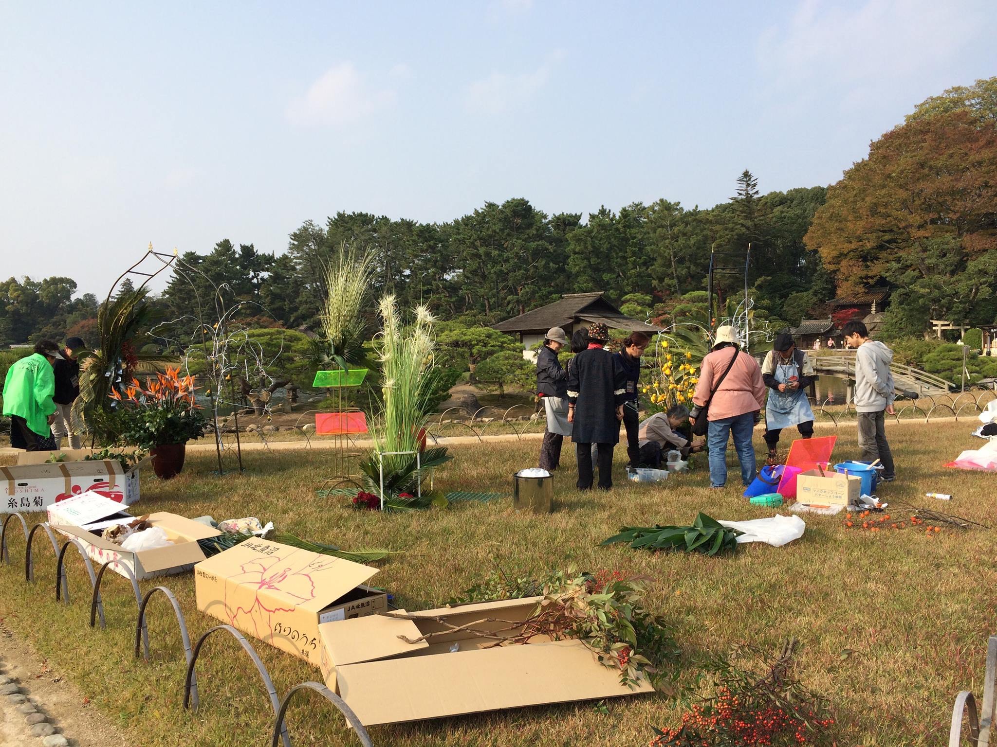 13日から後楽園内で生け花の大作が3箇所飾られています。その準備風景を前日の12日に撮影いたしました。