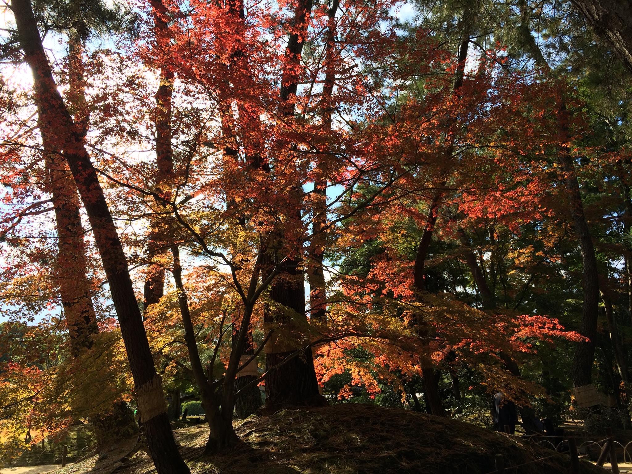 1枚目は、1本の楓で赤黄緑と三色揃ってる紅葉です。
