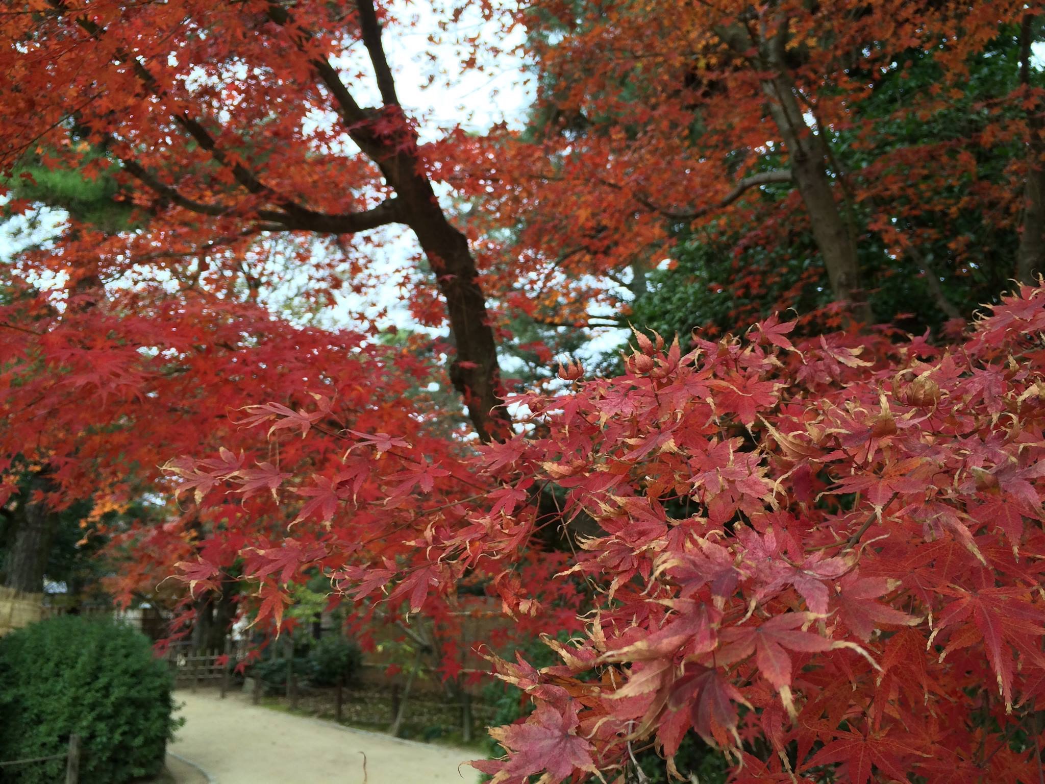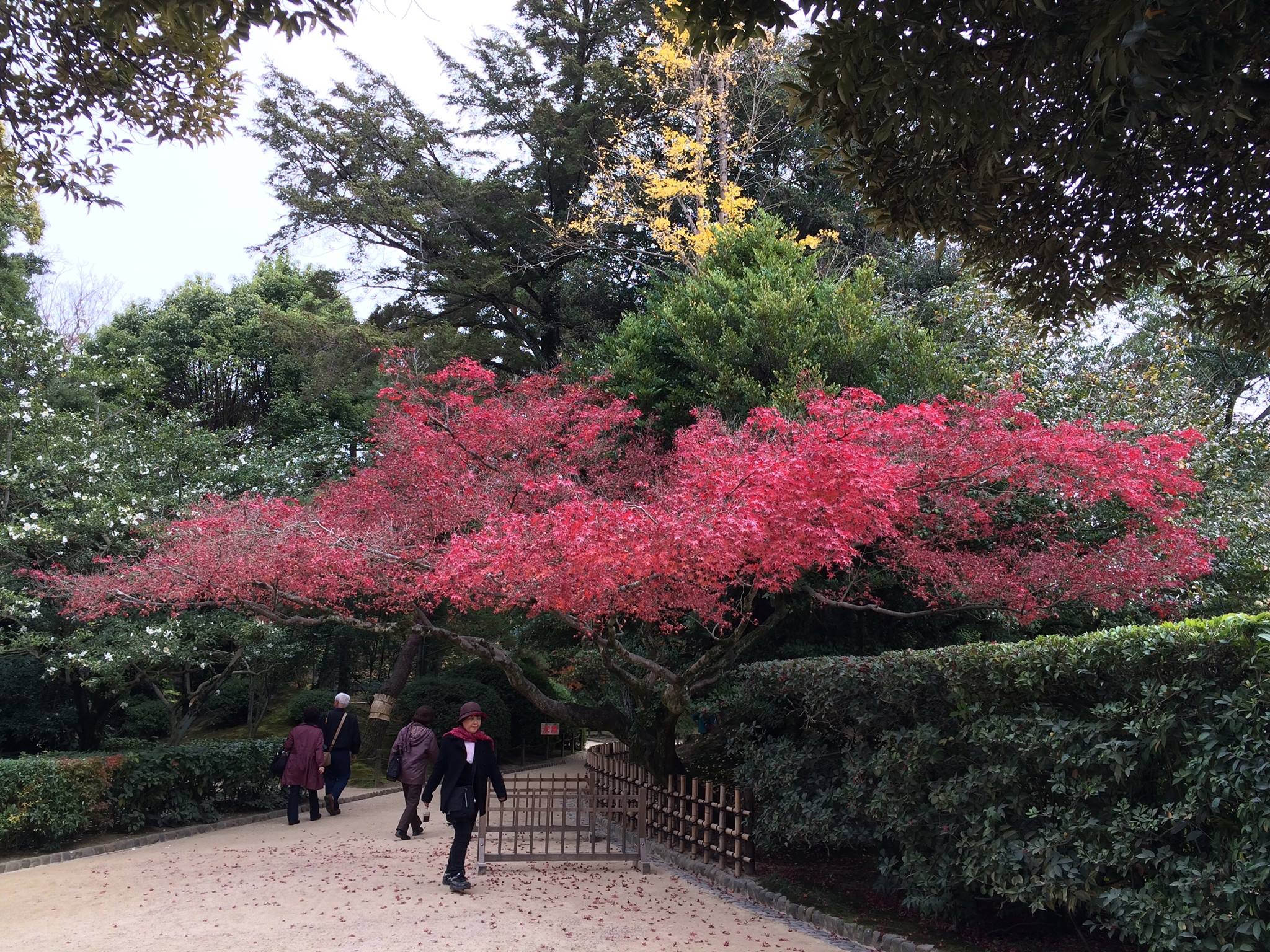 4日ぶりに来た後楽園は、正門すぐの一番キレイだったモミジが散り始めていました。(1枚目)