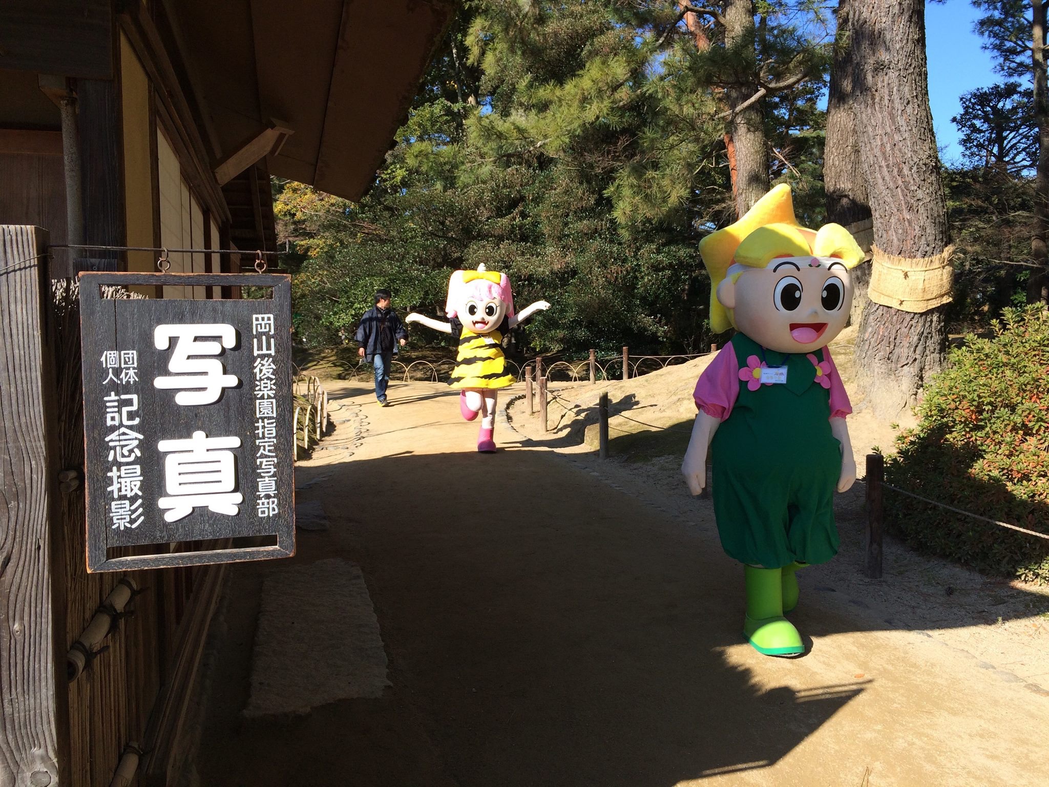 image岡山県のマスコット『ももっちとうらっち』と芳泉高校のマスコットキャラクター『笹太郎』が後楽園にやって来ました!