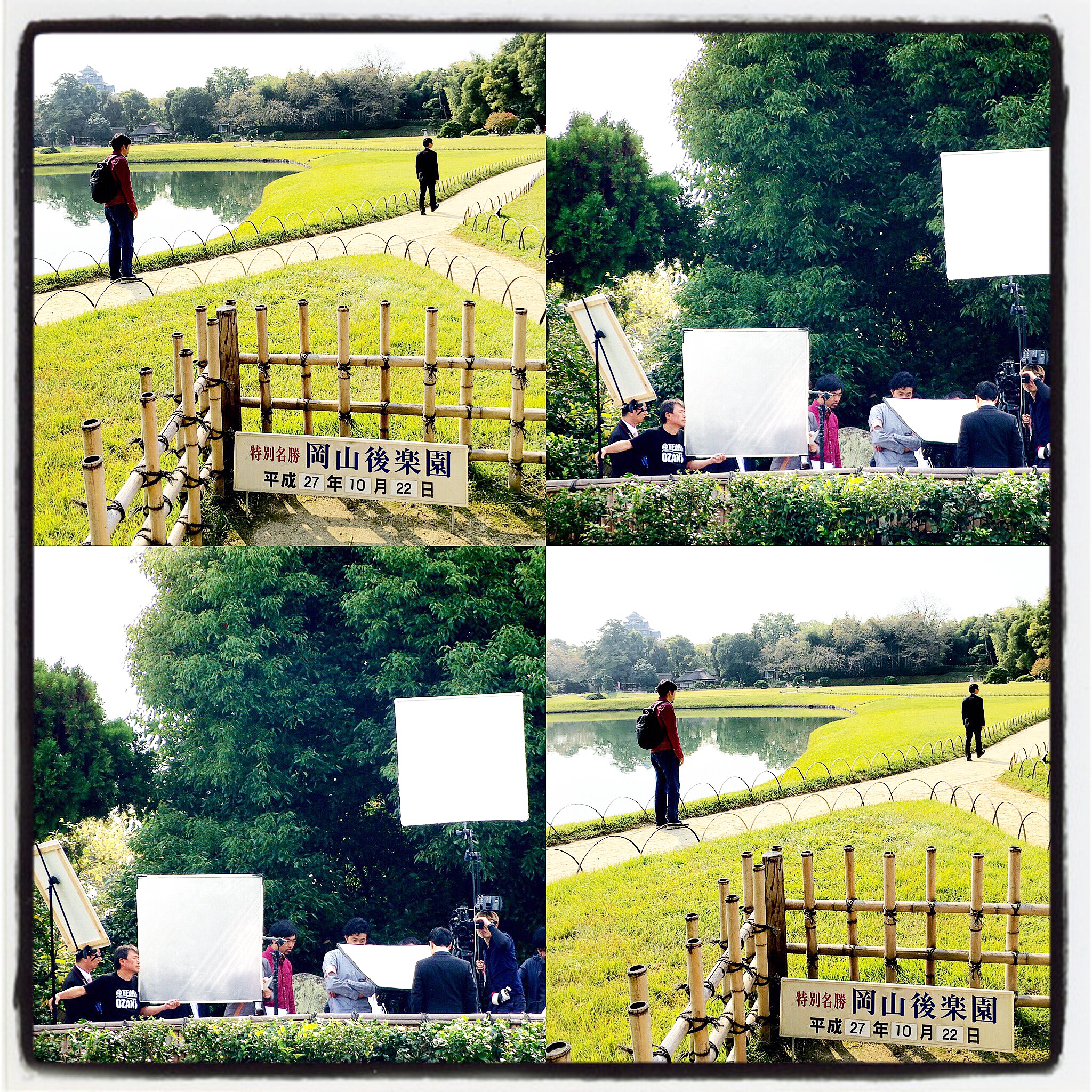 岡山後楽園に伊原木岡山県知事が、海外向けPRビデオの撮影に来られました。 当方も撮影の邪魔にならないよう、ヒナ段を片付けて協力いたしました。