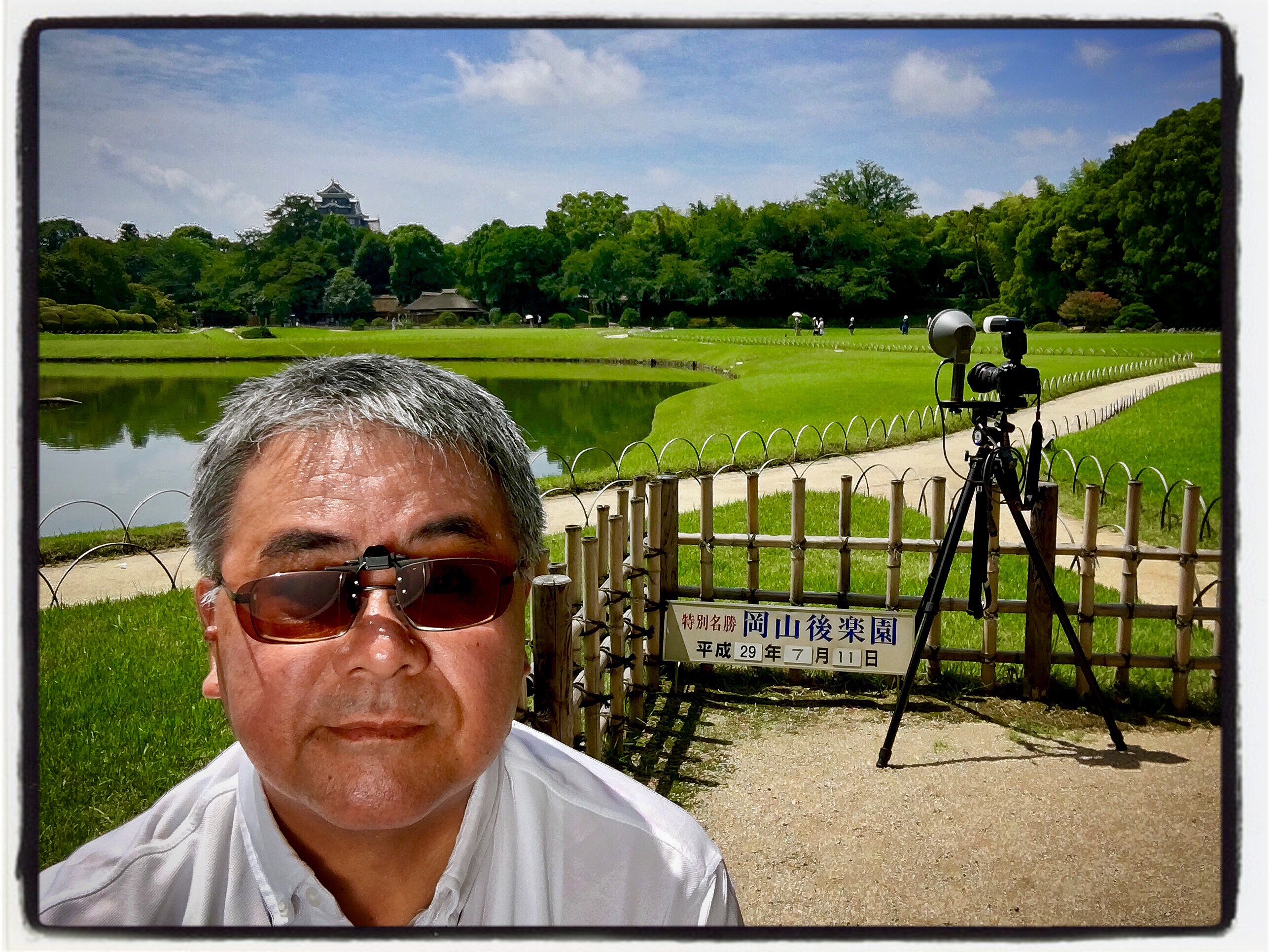 あまりに眩しいので、メガネに付けるクリップオンのサングラスを装着しました。