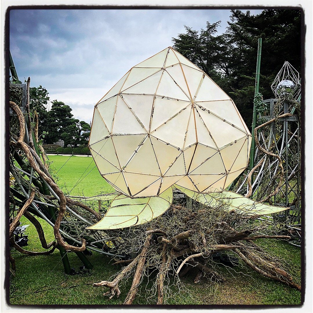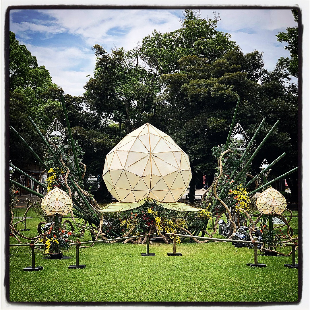 #岡山後楽園 #西外園 #白桃オブジェ #ミラーボール 設置 #観蓮節 に合わせた #蓮の蕾 かと思いましたが #ライトアップ される #桃 でした! 7/1の点灯開始をお楽しみに。