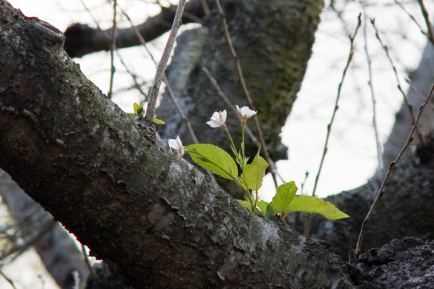 昨日仕事の片付けをした後に季節外れの桜の花を探しに行きました。