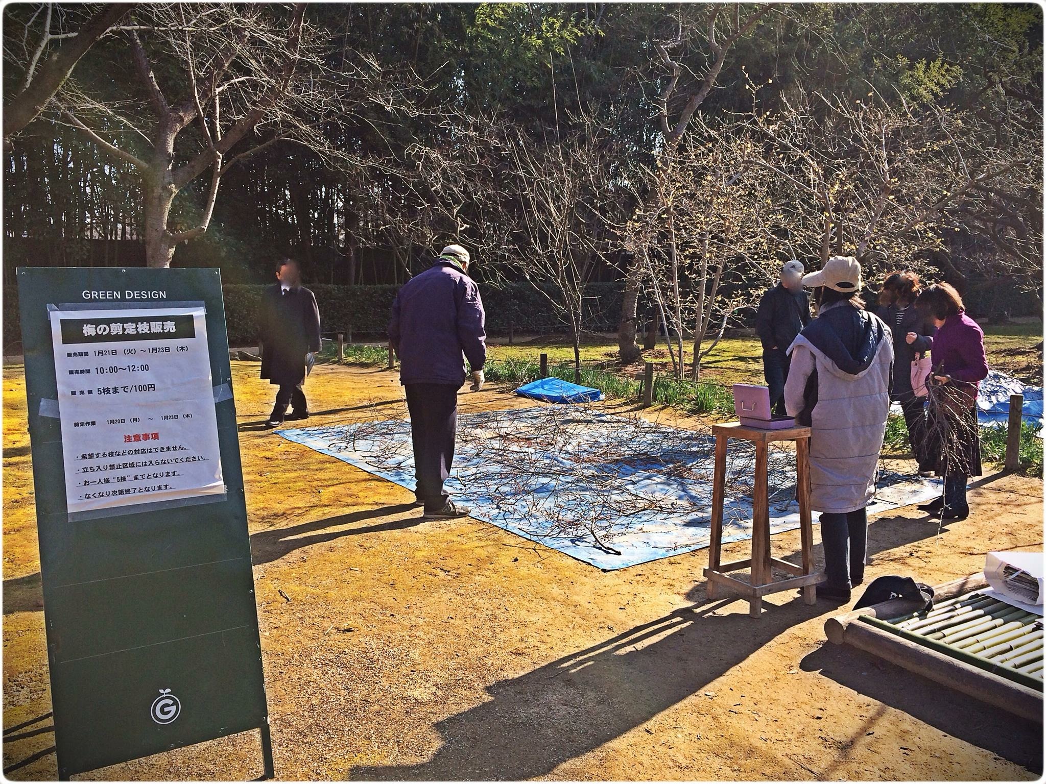 現在後楽園の梅林では剪定作業の真っ最中です。その剪定した梅の枝を21〜23日の三日間販売しているそうです。 剪定した枝と言っても蕾がたくさん付いていてとっても華やかでした。 12時までの販売ですが、昨日も1時間程で売り切れていましたから、お早めにどうぞ!