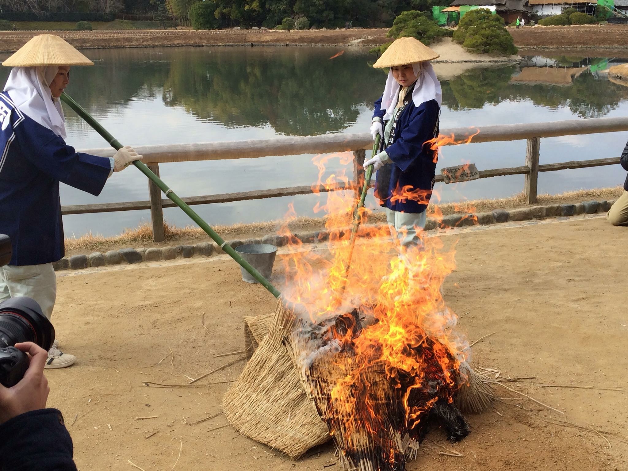 image今日は午前10時から害虫駆除の為に松の木に巻いた菰を外して焼く『松の菰焼き』が行われました。